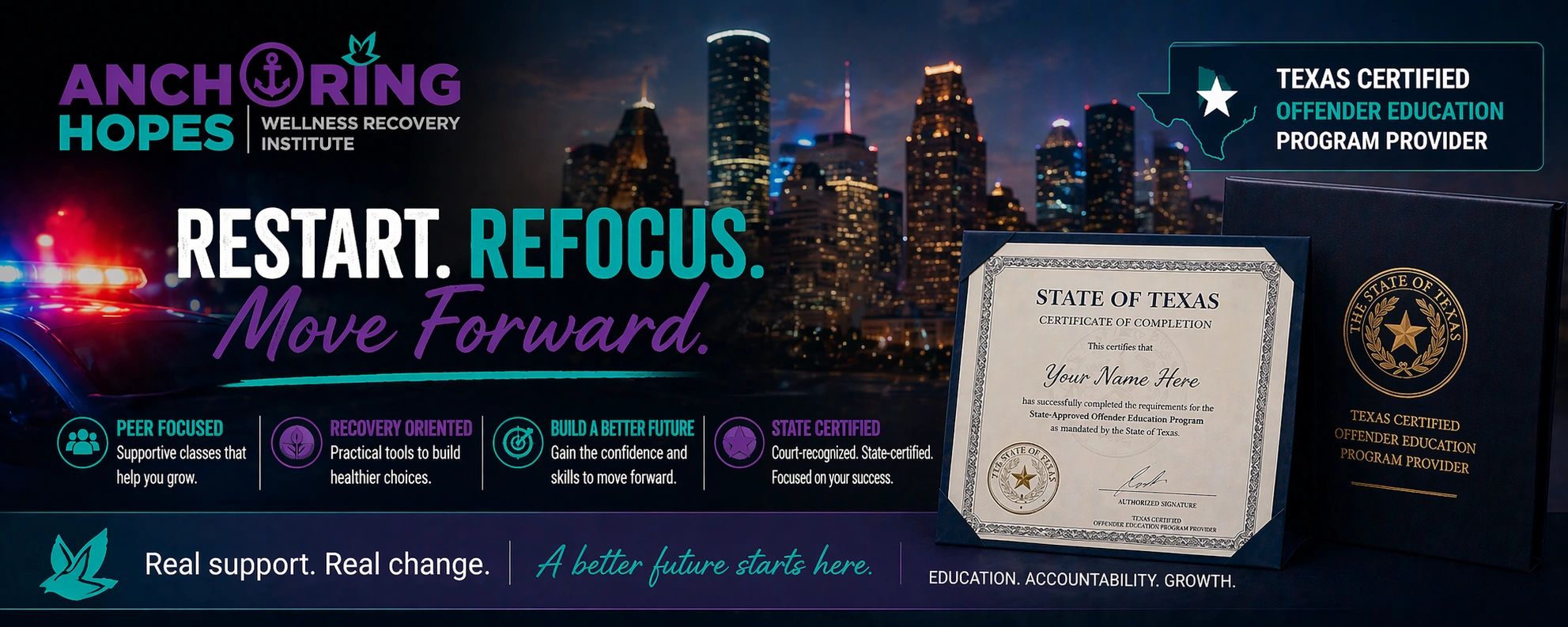 12-hour TDLR-certified course for first-time offenders.